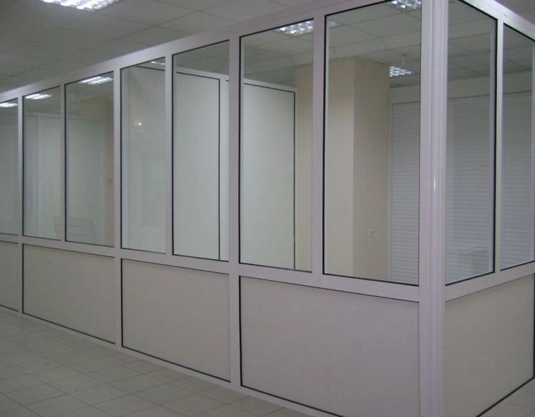 Непрозрачная перегородка из сэндвич-панелей (подходит и для офисов, и для санузлов, например);