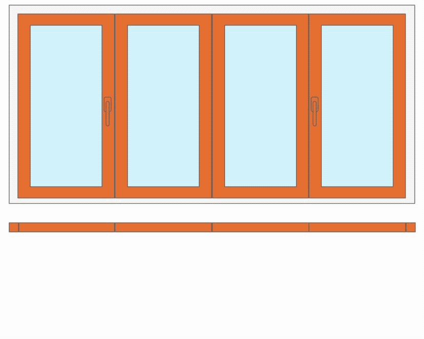 4 створки. Наведите курсор и задержите его на схеме двери. Вы увидите схему открывания всей конструкции
