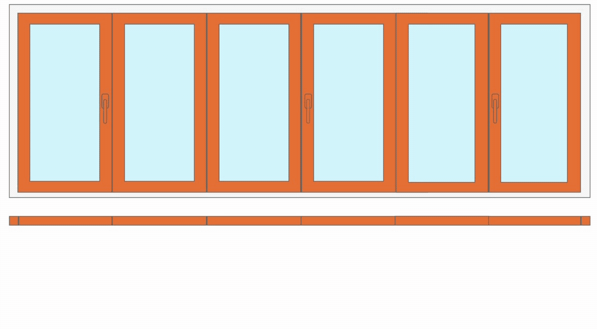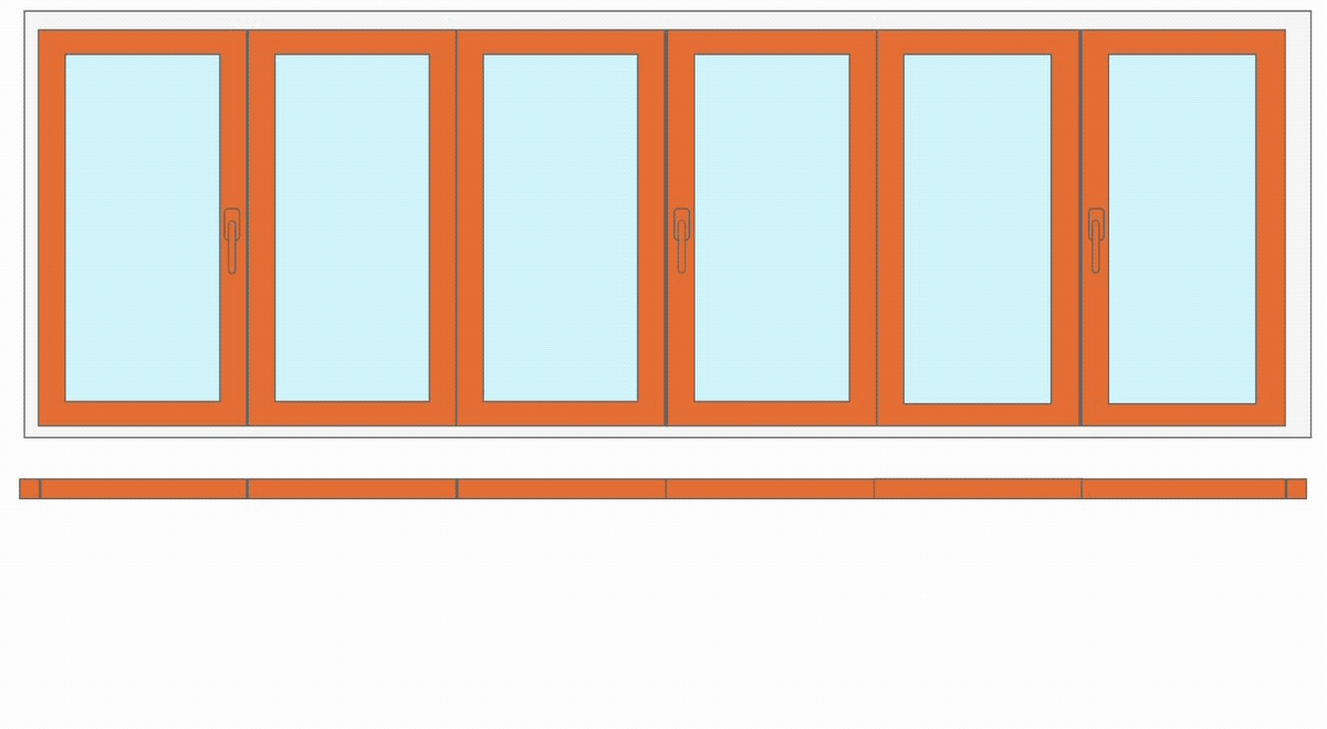 6 створок. Наведите курсор и задержите его на схеме двери. Вы увидите схему открывания всей конструкции
