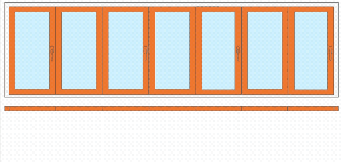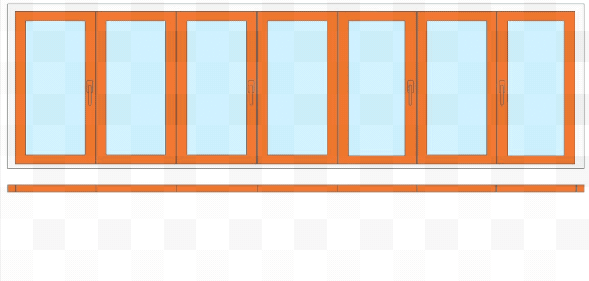 7 створок. Наведите курсор и задержите его на схеме двери. Вы увидите схему открывания всей конструкции