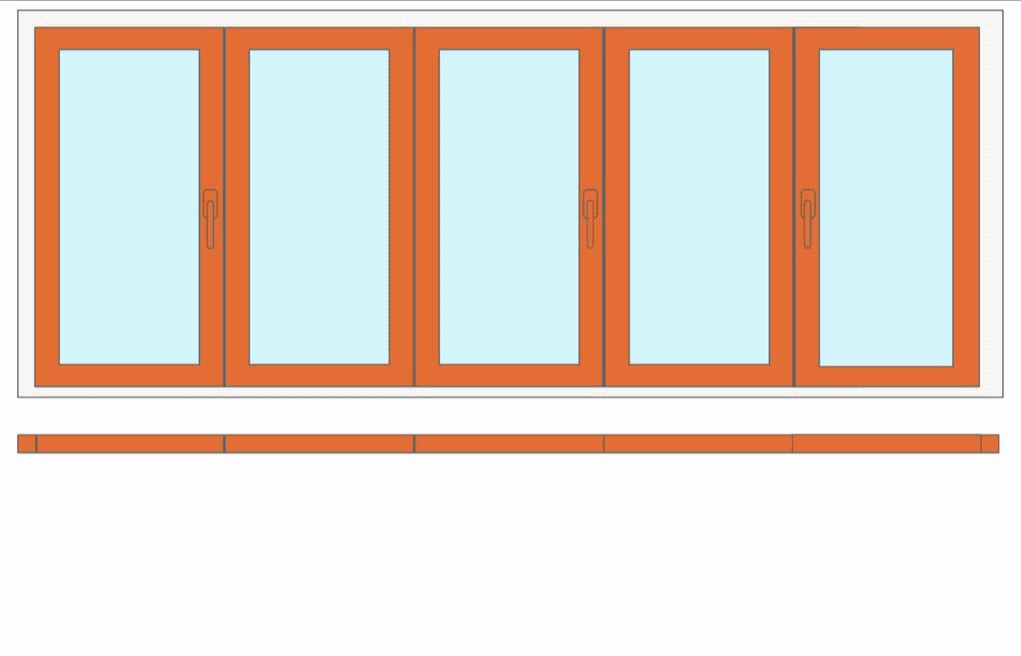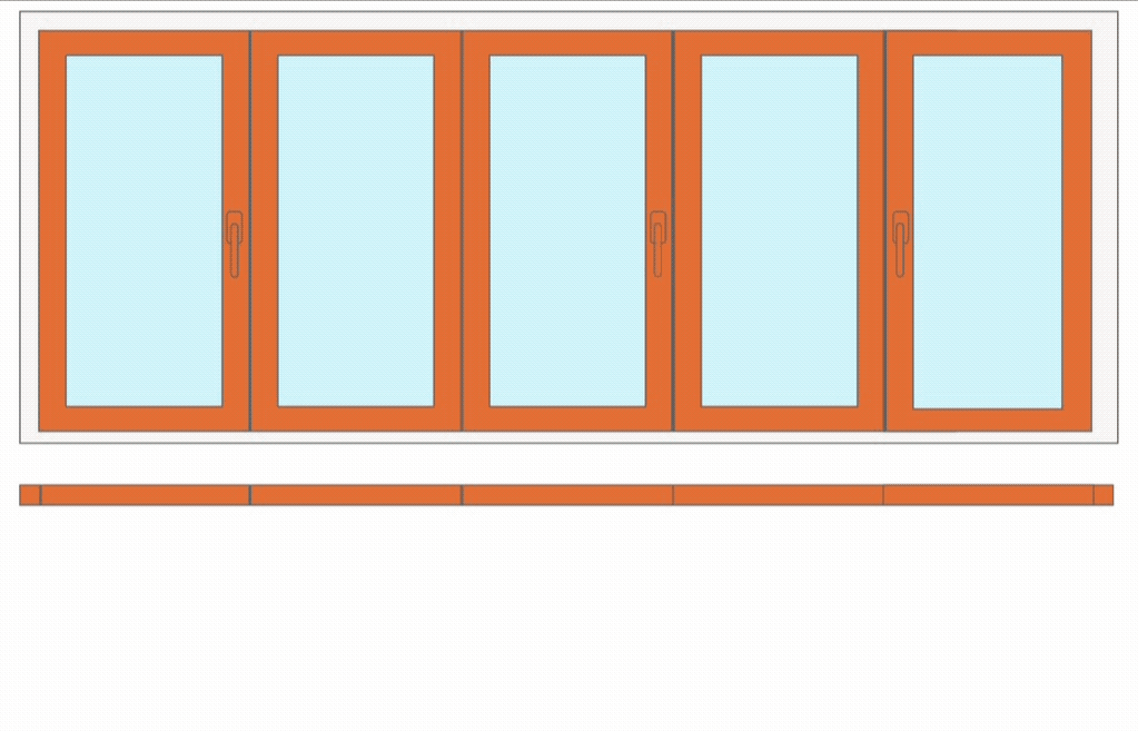 5 створок. Наведите курсор и задержите его на схеме двери. Вы увидите схему открывания всей конструкции